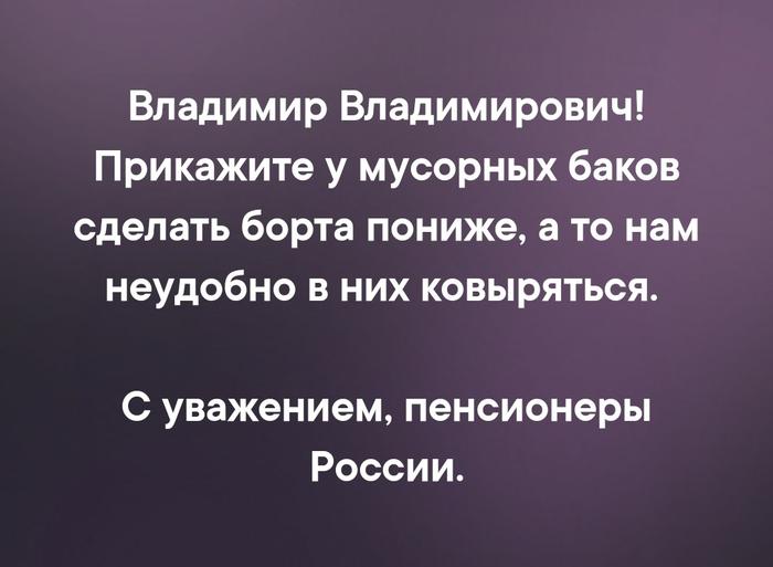 Почему бы тогда Путину на сказать прямо, что пенсионеры объедают его и его приятелей – и что они России не нужны. Все государственные подачки вроде индексации пенсий – это ведь ничто иное как профанация.