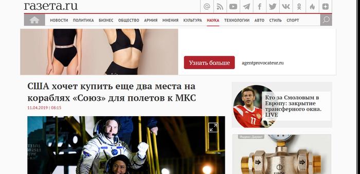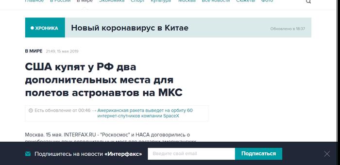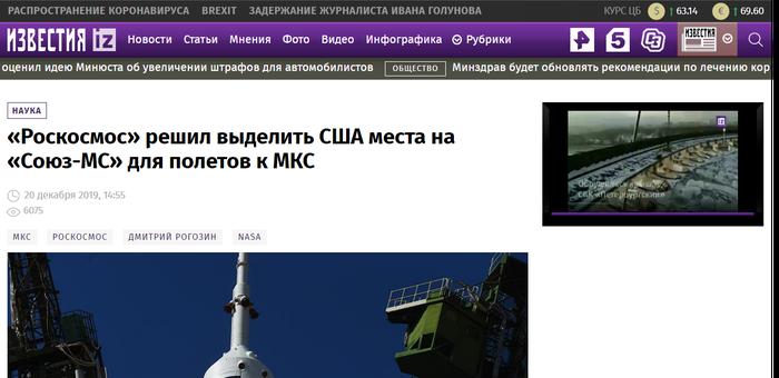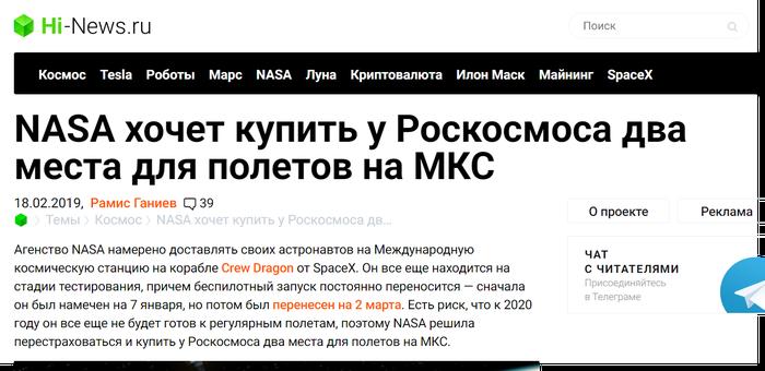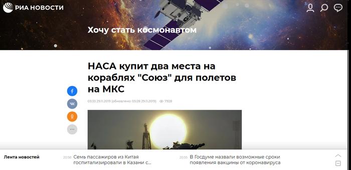 Причём на сайте "Роскосмоса" нет никакой свежей подобной новости.