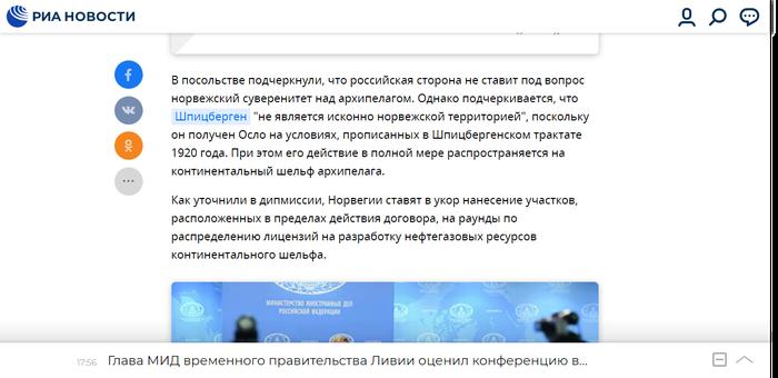 "Россия не оспаривает суверенитет Норвегии над Шпицбергеном, однако подчеркивается, что архипелаг, по словам дипломатов: "не является исконно норвежской территорией"