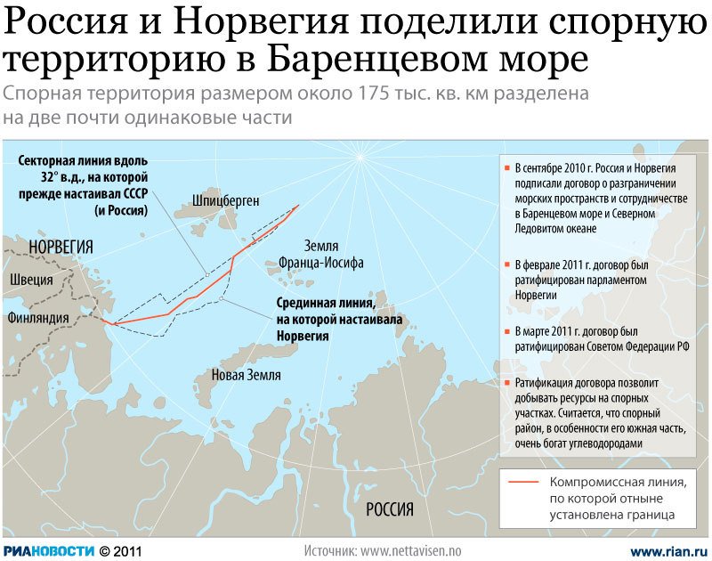 И да, не будем забывать о том, что в 2010-м РФ передала Норвегии 80 тыс кв.км акватории Баренцева моря: