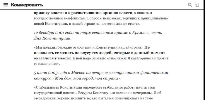 Да, "дошло время и до Конституции"- на которой вроде бы, клялся, и неоднократно...