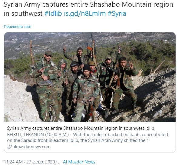 Накануне, 26 февраля, президент Турции Реджеп Тайип Эрдоган пригрозил новой военной операцией, заявив, что Анкара оттеснит силы Асада от своих наблюдательных постов в Идлибе, если те не отступят от них.