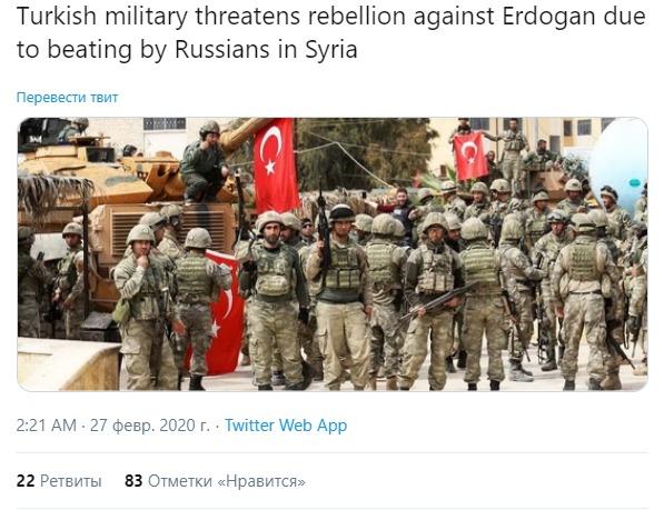 За эту борзость, за нарушение Асадом сочинских договоренностей от 22 октября 2019 г. Асад сейчас и получать будет от Эрдогана в бубен методично и очень больно. Из Идлиба его вышвырнут, как нашкодившего кота. Об Алеппо разговор еще впереди. Не все сразу.