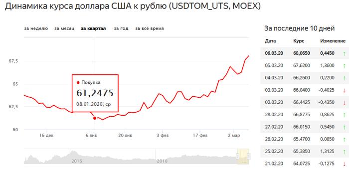 ===Кратковременное падение курс рубля в феврале-марте связано с большими закупками валюты по бюджетному правилу Минфином. В марте-апреле количество закупки валюты МинФином в рамках бюджетного правила будут сокращены и курс вернется к значениям 62 руб за доллар===