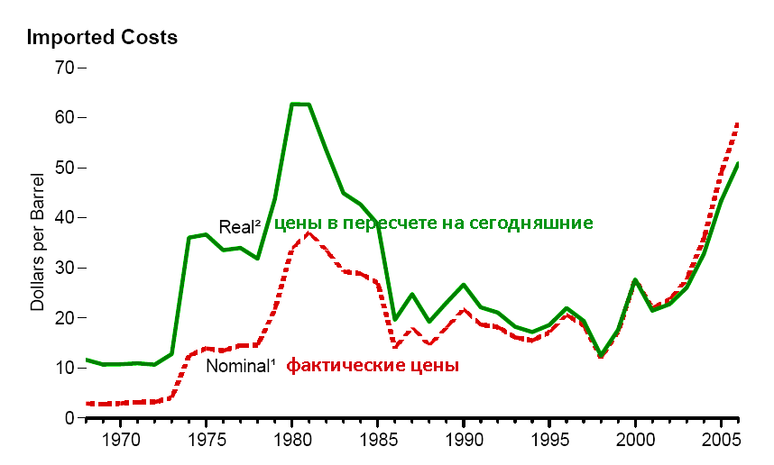 Если в 1973- 85 г.г. СРЕДНЕГОДОВАЯ ЦЕНА НА НЕФТЬ была 30- 35 долларов, то в 1986- 1989- 14- 20.
