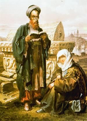 Амадео Прециоси. Раввин и вдова на стамбульском кладбище. Цветная литография.