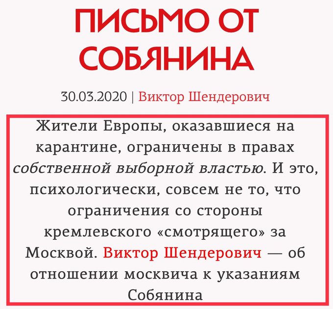 Москва фактически находится в режиме карантина, и премьер Михаил Мишустин требует от губернаторов введения аналогичных мер. Перенос даты всенародного голосования по изменениям в Конституцию стал одним из косвенных признаков того, что ситуация значительно хуже, чем та, о которой говорят данные официальной статистики. Столь важный для Путина ход по продлению своих полномочий никогда не был бы перенесен, если бы ситуация не была критической.