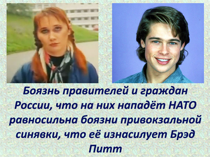 С Вашими параноидальными мыслями об агрессивности сытых цивилизованных людей, желающих отнять у россиян дырки между досок, куда те срут, Вы меня уже ознакомили.