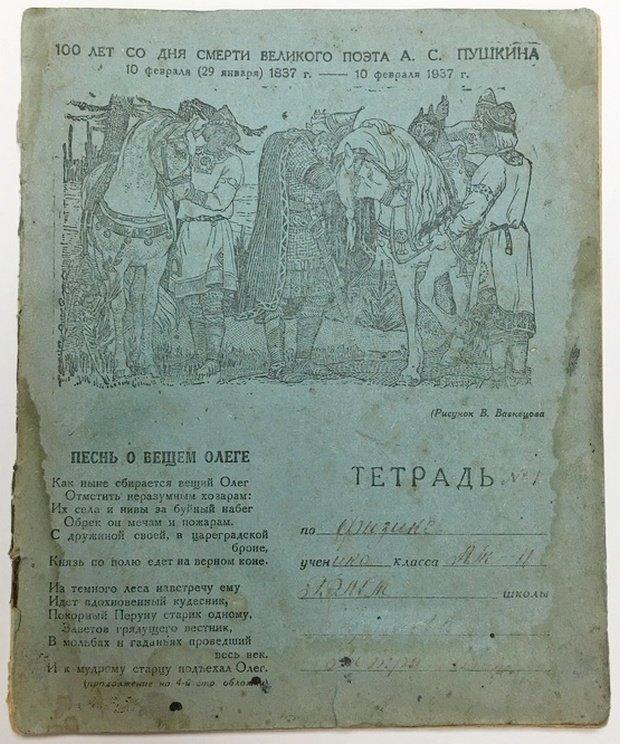 В честь столетней годовщины смерти поэта в феврале 1937 года Народный комиссариат местной промышленности выпустил тиражом в 200 миллионов экземпляров специальную серию "пушкинских тетрадей" с портретами поэта и иллюстрациями к его произведениям на обложках.