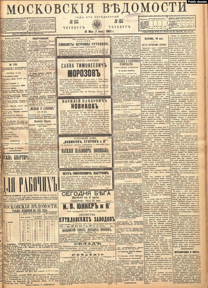 "Московские ведомости" от 1 июня (19 мая) 1905 года