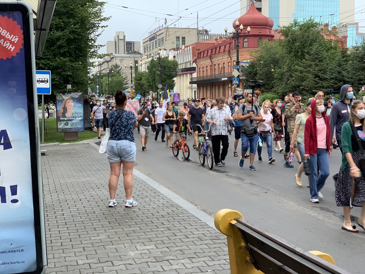 Как пишет «Новая газета», к зданию правительства в Хабаровске, по данным на 20:00 местного времени, собрались около 150 человек. После этого протестующие пошли шествием по центральным улицам, «Русская служба Би-би-си» оценила количество участников в 200−250 человек, среди них — люди в форме десантников, которые празднуют день ВДВ.