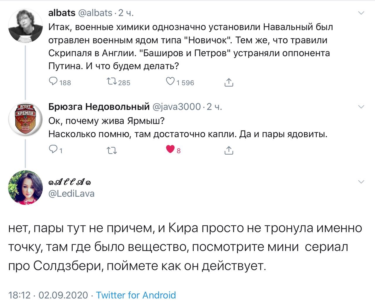 «[Они] нанесли это вещество на его белье — трусы, носки, майки — и все. С утра Навальный принял душ, надел свежее белье и поехал в аэропорт». — Daily Mail