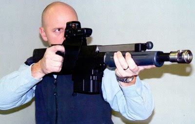 Пару месяцев назад австралийский фирма Metal Storm представила MAUL ( по-русски - кувалда). Это - легкий полуавтоматический дробовик, разработка которого финансируется флотом США. Уникальная технология Metal Storm позволяет размещать боеприпасы внутри ствола и затем с помощью электроники выстреливать одновременно одним зарядом. Это позволяет сделать дробовик таким компактным, что он может быть сконфигурирован как пистолет!