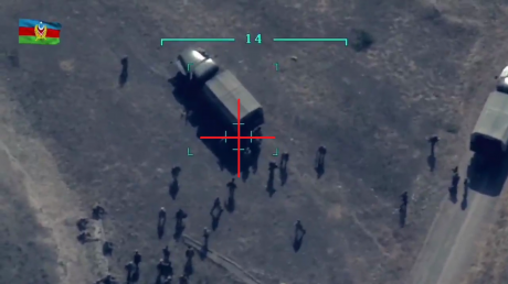 Министерство обороны Азербайджана опубликовало кадры воздушного удара по большому скоплению армянских солдат. Информационные агентства сообщают эти сведения со ссылкой на официальный сайт азербайджанского МО.