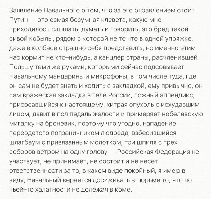Какой из этих вариантов был у Навального, не суть. Суть в том, что никакого отравления не было.