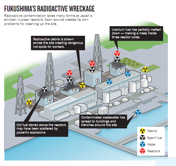 Операция по обеззараживанию реакторов может оказаться еще более сложной задачей. Разбросанные частицы топлива и высокий уровень радиации не позволяет составить точную картину разрушений. Для этого, возможно, придется воспользоваться специальными роботами.