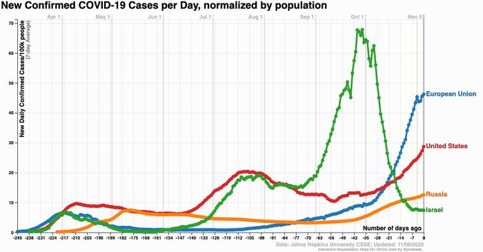 - Израиль: + 300 новых заболевших, + 0 новых умерших.
