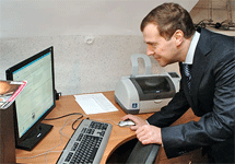 По словам президента, у него тогда поинтересовались, нужен ли ему Интернет, и сообщили, что в рабочем кабинете ему пользоваться сетью нельзя, поскольку он является закрытым. "У вас есть комната отдыха, нужно, чтобы было некоторое количество метров между основным компьютером и этим компьютером. Иначе мы вам ничего не поставим", - сказали тогда Медведеву. "Почему я привожу этот пример? В целом, ведомства с очень большим скрипом свои подходы в этом смысле меняют, я могу их чисто по-человечески понять, потому что каждое из них бьется за свои позиции, за место под солнцем, старается показать свою нужность. Но менять это необходимо, потому что в противном случае, помимо остальных проблем, мы упираемся в эту косность, которая очень глубоко засела в государственных структурах, и если ее не преодолеть, то будет очень тяжело", - рассказал Медведев.