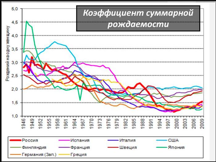 Если всерьёз интересуетесь демографией (а не используете её для демагогии) - посмотрите рождаемость по возрастным когортам женщин, это - наиболее объективный показатель.