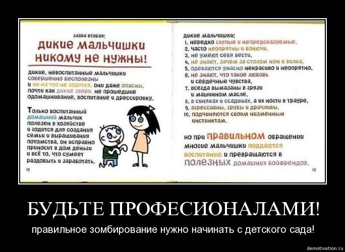 Пора бы уже "слабой" половине человечества осознать что именно они со своими "новомодными" воспитательными тенденциями, с идеями "равноправия" (создающего перекос в пользу Ж) - разрушают страну, институт семьи, мораль и ценности общества.