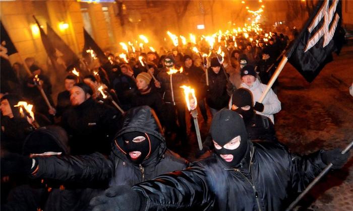 Ползучая украинизация приобрела более агрессивный характер. Жалобы бабушек, не понимающих аннотацию к таблеткам на украинском, и возмущение граждан состоянием русского языка, который должен охраняться государством, лечились визитом крепких хлопцев с арматурой на "поездах дружбы". Да, чуть не забыла: СССР уже тогда считался оккупантом, Бандера и Шухевич национальными героями (спасибо Институту Национальной Памяти, смастыренному по образу Польши и Прибалтики), а в парламенте партия "Свобода" имела своих представителей. Не буду перечислять многочисленные названия нацистских объединений, официально зарегистрированных в органах власти, сами найдете.