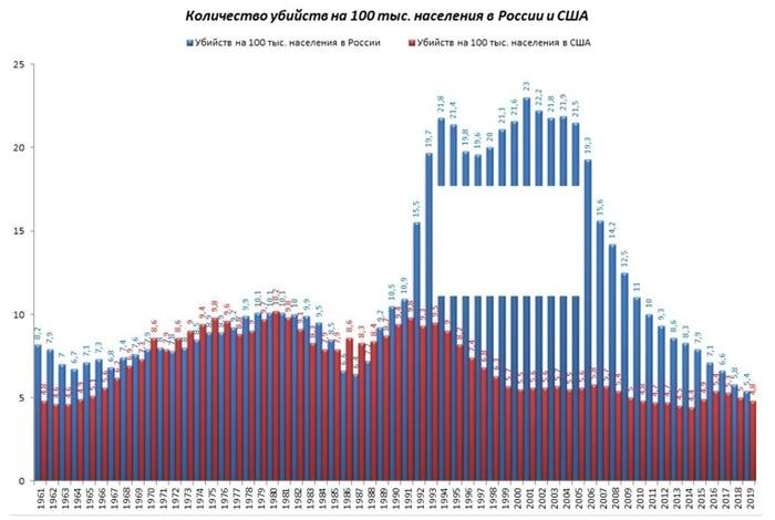 Многие штаты США имеют уровень убийств выше, чем в России.
