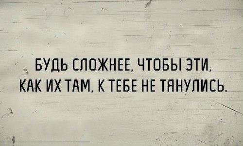 Ещё бесит «Будь проще и люди к тебе потянутся».... Не люблю простых людей. Не хотелось бы с такими общаться...