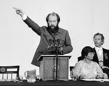 Солженицын появился совсем не случайно. Очень интересные сведения о писателе приводит в книге «Трагедия России» его почитатель протоиерей Георгий Митрофанов, прославившийся также апологией предателя Власова. Оказывается, когда стал вопрос о дальнейшей судьбе Солженицына, то глава правительства СССР А.Н.Косыгин - интеллигентный человек, патриот-государственник, видя в Солженицыне угрозу для советской империи, предложил выслать Исаича в Якутию, в город Верхоянск. Но по личной протекции главы КГБ Ю.В.Андропова Солженицын был выслан на Запад. Интересно, что Андропов, человек, утопивший в крови венгерское восстание 1956 года, всегда резко относившийся к врагам коммунизма, вдруг проявил такую снисходительность к явному врагу советской власти. Получается, что Андропову было выгодно выслать своего ставропольского земляка на Запад, чтобы там он порочил своим «Архипелагом ГУЛагом» Россию, создал стране имидж империи зла и отвернул от СССР всех людей доброй воли, готовых помогать косыгинским реформам, проводимым в СССР.
