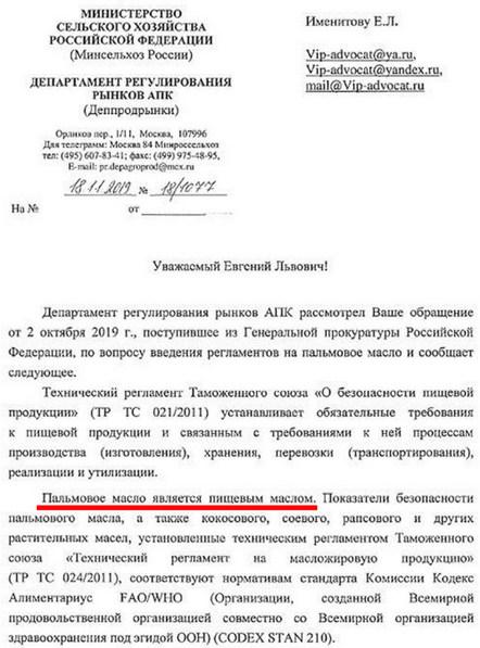 Более того, в октябре стало известно, что коллегия Евразийской экономической комиссии (ЕЭК) попросила правительство РФ внести в законодательство Таможенного союза нормы по содержанию вредных веществ в растительных маслах. Соответствующее решение председатель коллегии ЕЭК Тигран Саркисян подписал еще 6 августа 2019 года.