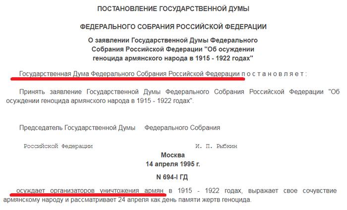 Ни одно государство, признавшее геноцид, в том числе Россия,
