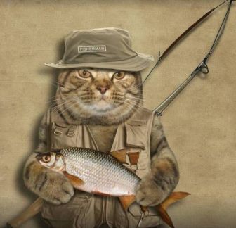 А коты рыбачат в ведрах и сетках в основном, могут с кукана снять. Был бы человек-рыбак рядом - всё будет Мяу!))