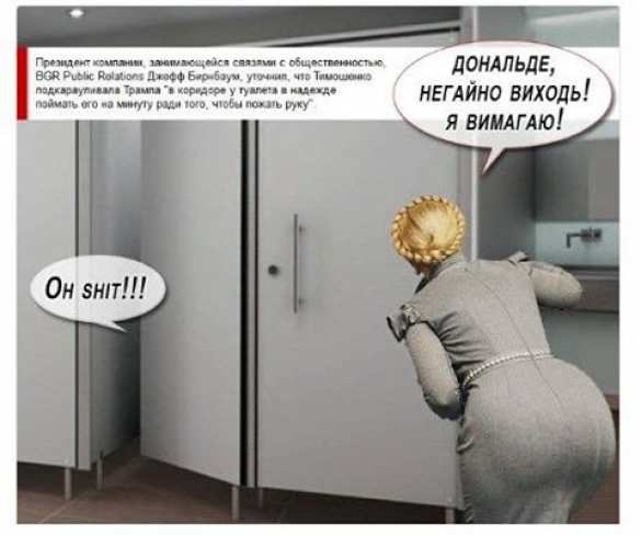 Так, президент компании BGR Public Relations Джефф Бирнбаум подтвердил, что Тимошенко поджидала Трампа в коридоре около уборной в надежде пожать руку президенту.