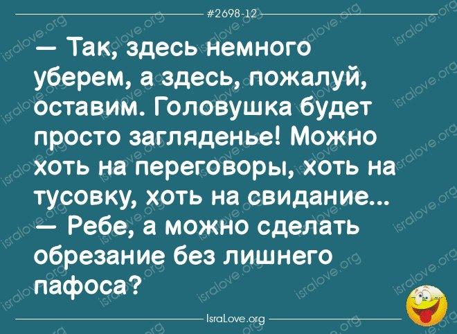 — Розочка, я таки напрасно поверила Коко Шанель, шо духами надо брызгать те места, какие хочешь, шобы мужчины целовали…. Ты бы только знала… как там мине жгло…!!!