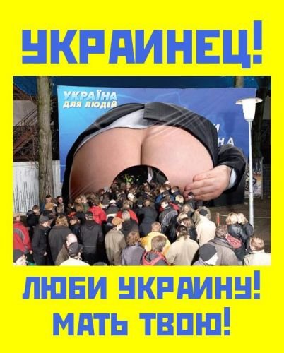 Ох, вы меня раскусили. Это прискорбно. Я снова в тупике. Вы меня будите бить? Может даже ногами? Закройте пасть, вас порвут ваши же соотечественники, когда я укажу на вас перстом. Я скажу, что вы фашист. Вы хотите бить человека другой национальности. Ведь я же русский. Или еврей. Или вообще я из Гондураса. Класс! Как приятно, смотреть, когда украинец грызет украинца из меня, чистокровного гондурасца. Ну вы тут деритесь, а я пока пойду поменяю смокинг…