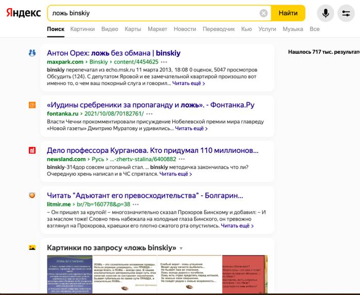 Наивный binskiy реально верит, что поисковик нашёл 283 000 доказательств вранья Путина? Я привела ему результаты аналогичного поиска про его нику))))