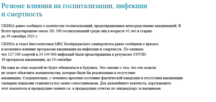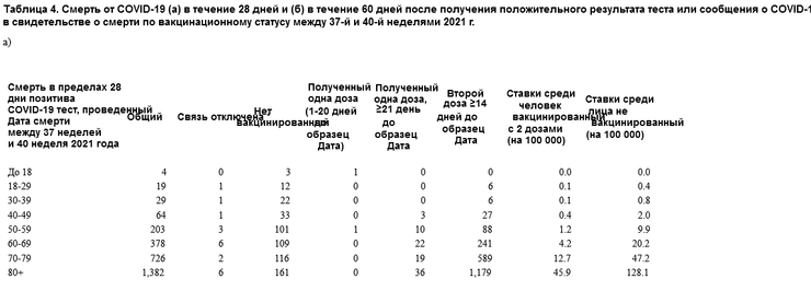 Так что ни о какой в десятки раз меньшей смертности у привитых говорить не приходится. Более того, со временем, если взять и посмотреть более ранние подобные отчеты, ситуация для привитых ухудшается. Если память не изменяет, то еще между 35 и 38 неделями не привитые умирали в 11 раз чаще. Сейчас уже в 7.5 раза.