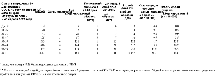 Берем строчку с самым лучшим показателем с точки зрения вакцинации по смертям в группе 50-59 лет. Данные с 37 по 40-ю неделю. Не полностью привитых не рассматриваем.