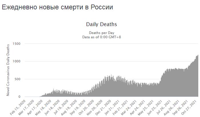 В России в сентябре 2021 года смертность выросла на 31228 человек или на 18,3%, свидетельствуют данные Росстата (по данным этого ведомства, в сентябре умерли 201 945 человек против 170717 человек в сентябре 2020 года). Одновременно, в конце октября, опережая события вице-премьер РФ Татьяна Голикова заявила, что, по оперативным данным, в октябре 2021 года смертность выросла на 23,8% к сентябрю, то есть смертность в октябре составит приблизительно 38 660 человек. А за два этих месяца – примерно 70 тысяч человек.