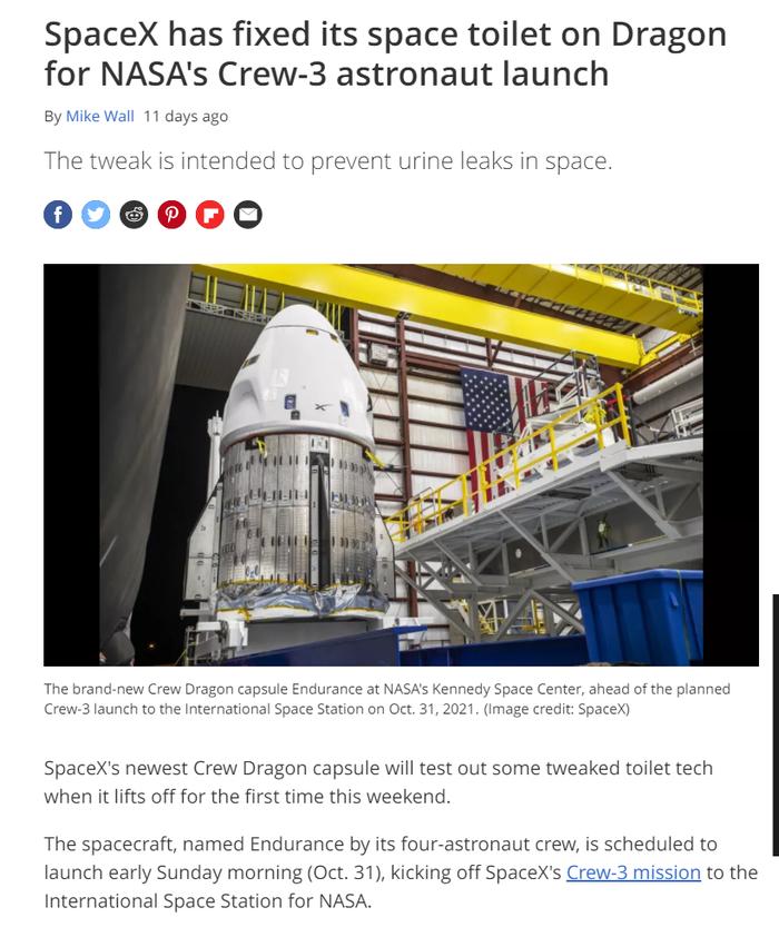 После инцидента на корабле Crew Dragon, связанного с "утечкой мочи", астронавтов попросили выбрать другой способ "похода в туалет". Об этом сообщил журналистам менеджер программы коммерческих экипажей NASA Стив Стич.