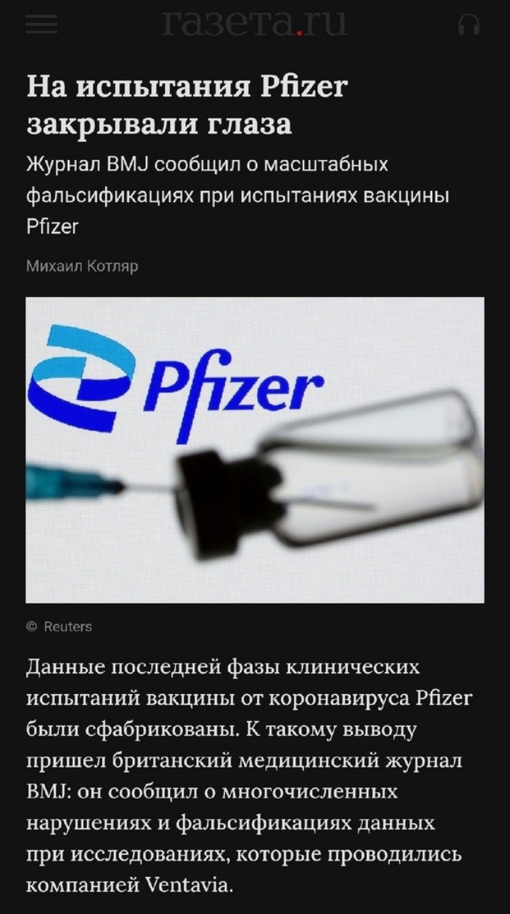 Пол Тэкер (а это не какой-то там хрен с горы) опубликовал в Британском медицинском журнале BMJ большую статью, где разоблачил Ventavia, которая облажалась с той тысячей участников III фазы клинических исследований "Пфайзер", а это под 45 тысяч чел.