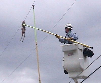 Причиной недавнего перебоя с электроэнергией в штате Монтана стал олень, повисший на проводах. Как он туда попал, никто не знает. Однако есть предположения, что олень стал жертвой орла, который случайно его выронил по дороге в гнездо. Новость, мягко говоря, необычная, поэтому вызвала интерес у многих англоязычных пользователей Интернета.