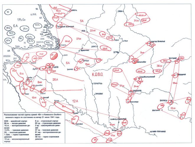Оперативное построение 4-й армии — в два эшелона. В первом — одна танковая и четыре стрелковые дивизии, во втором — танковая и моторизованная дивизии. Аэродромы 10-й смешанной авиационной дивизии были вынесены почти к самой границе. Некоторые находились в восьми километрах от пограничных столбов.