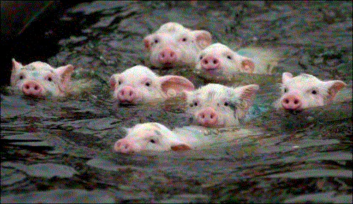 Вот и поросята с картинки весьма красочно хрюкают "Неужели еще десять лет плавать? Может пора уже травки покушать?"