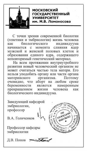 Аборт с точки зрения биологии (генетики и эмбриологии).
