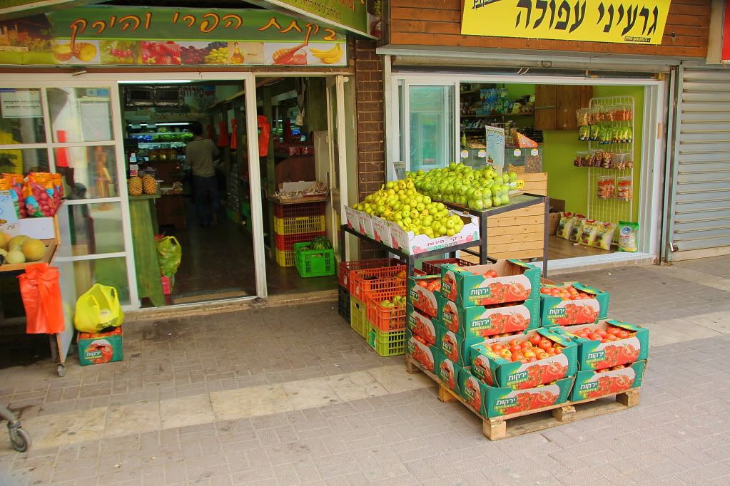 Небольшой магазин. На фото виден религиозный еврей в национальной одежде.