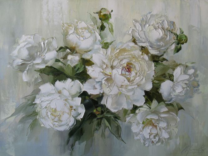 Он спешил: ему во что бы то ни стало нужно было купить цветы, именно те цветы,которые любит она - белые пионы! Он обежал уже несколько цветочных ларьков,но именно белых,нигде не было.