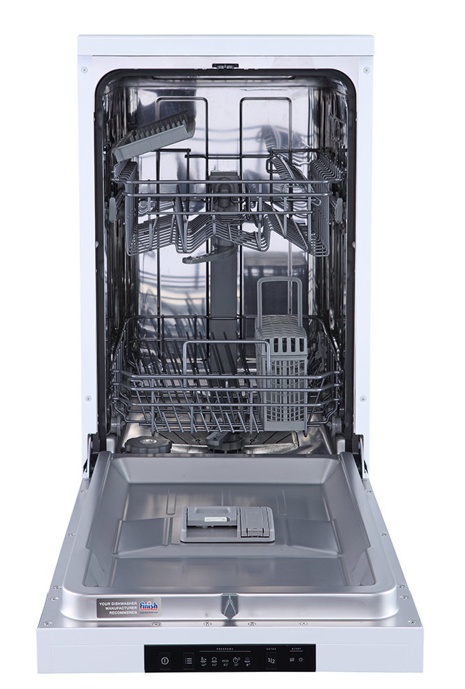 При выборе посудомоечной машины самое первое, что надо учитывать, — ее тип и габариты. Вариантов по типу размещения здесь два — встроенные и отдельно стоящие. И те, и другие выпускаются в двух размерах — узкие шириной 45 см и полноразмерные 60-сантиметровые модели. Еще есть компактные машины, которые можно поставить на стол, но это история для другого материала. Наша же Gorenje GS520E15W относится к узким отдельно стоящим посудомойкам, и у этого есть несколько важных плюсов.