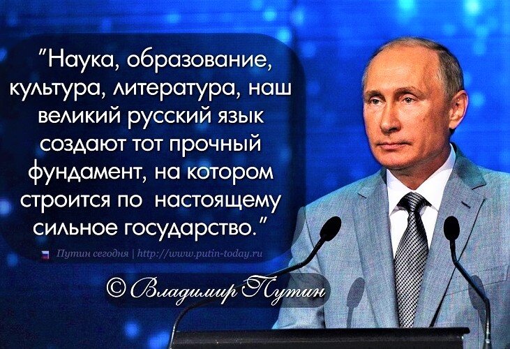 "Наука, образование, культура, литература, наш великий русский язык создают тот прочный фундамент, на котором строится по настоящему сильное государство". Владимир Путин.