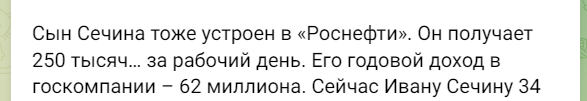 Про Сечина-старшего мы уже знаем - работа его оплачивается 3,3 миллиардами в год.