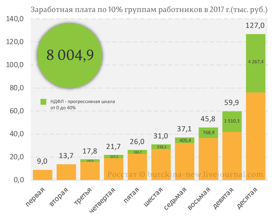 Вышло, что доходы бюджета вырастут с 4,2 трлн. рублей при 13% НДФЛ для всех до 8 трлн. рублей при новой.